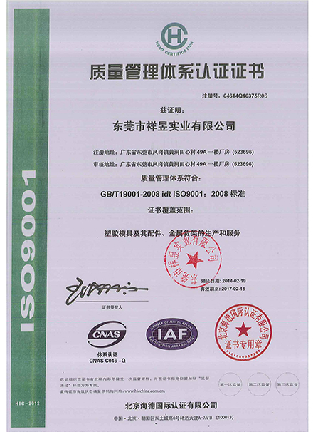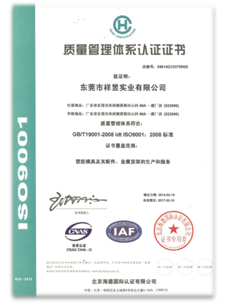 質(zhì)量體系證書