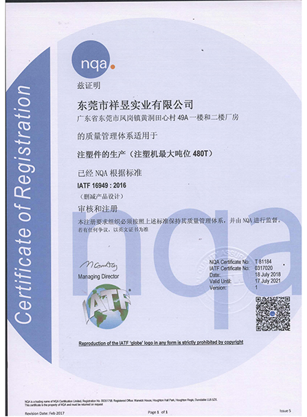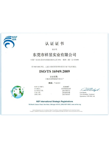 祥昱IATF16949:2016證書